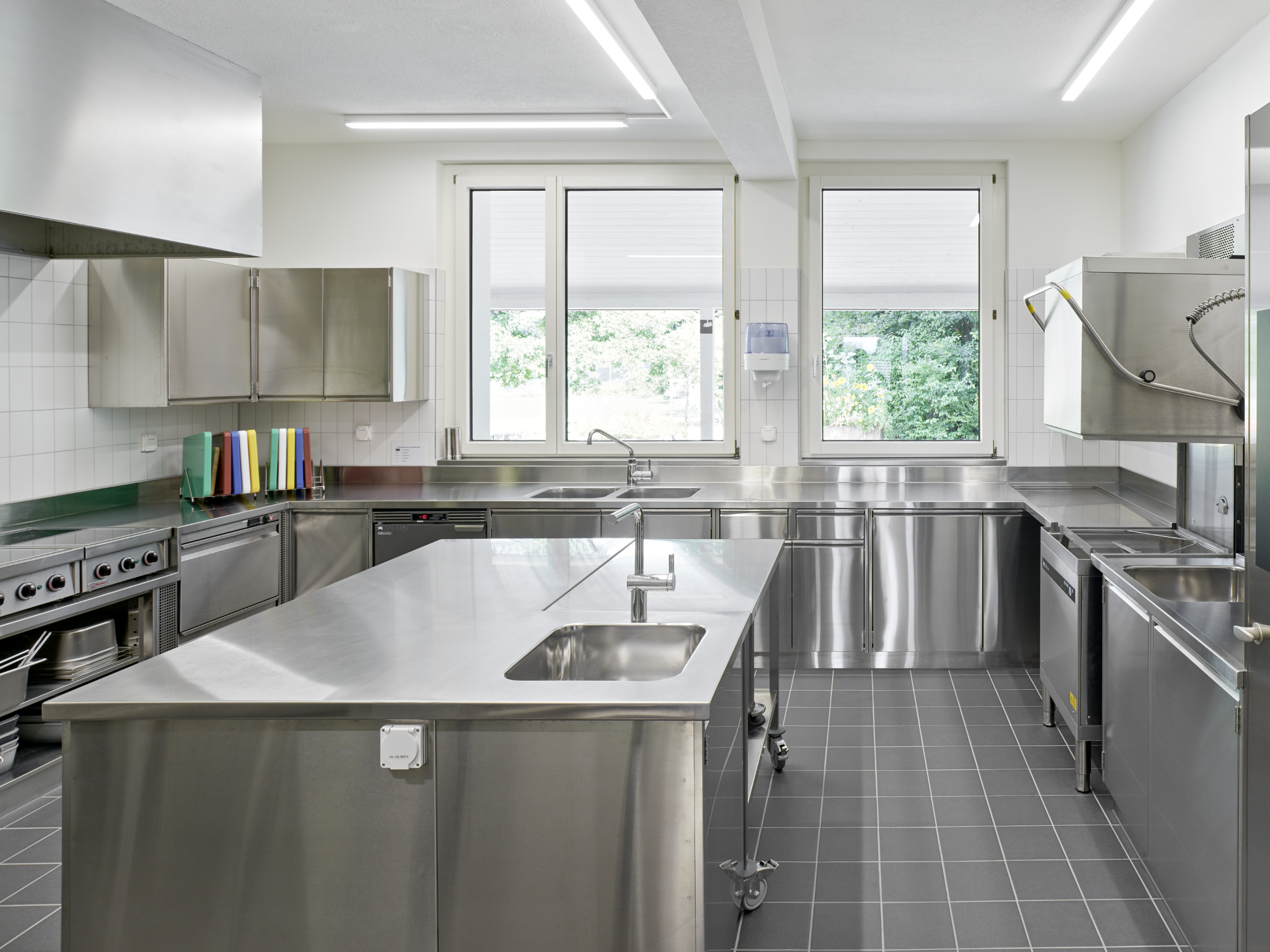 Im Foyer gibt es eine kleine Teeküche, damit Anlässe auch funktionieren, wenn der Zutritt zur Küche im Obergeschoss nicht möglich ist.